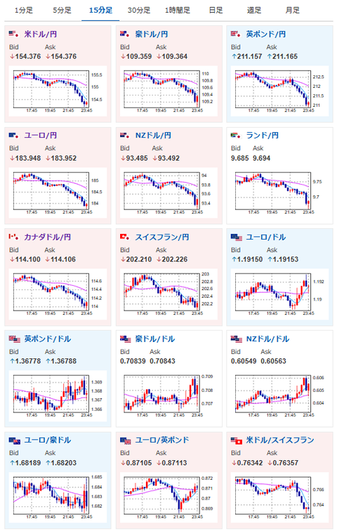 そのためドル円は急激に円高に押し戻され1ドル154円台前半となっているお。