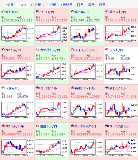 ECB議事要旨後からユーロも強含み、全面円安だお。