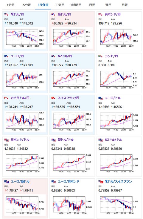 現在ドル売り、円売りでの推移で1ドル148円台前半。