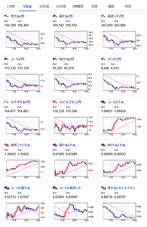 現在ドル円、クロス円は一旦落ち着いた動き。
