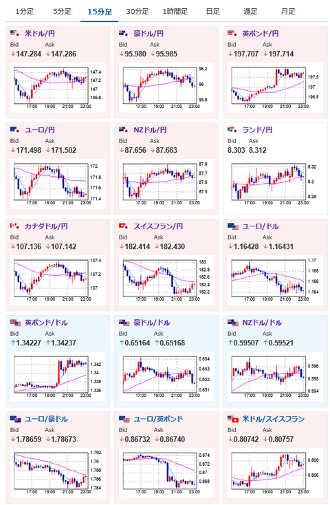 前回の記事から一時146円台後半に落ちる場面があったものの、特に目立った材料はなく1ドル147円台でレンジの動きだお。