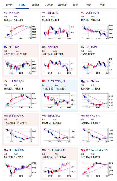 先ほど一旦1ドル149円に乗せた後は少し円高に押されて再び148円台後半で推移しているお。