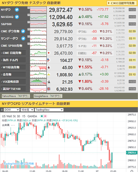 26日お昼頃の想定通り、本日の米国市場は休場なので静かな流れだお。