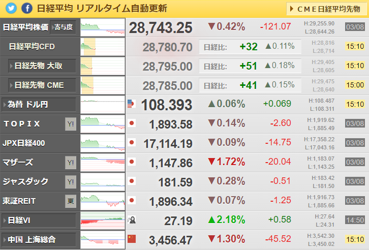 前場ではプラス圏だった日経平均も後場でマイテン、最終的には120円程安で引けだお。
