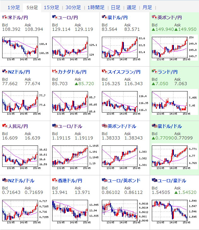 ユロ円、ポン円、豪ドル円などは円安傾向で予想通り。
