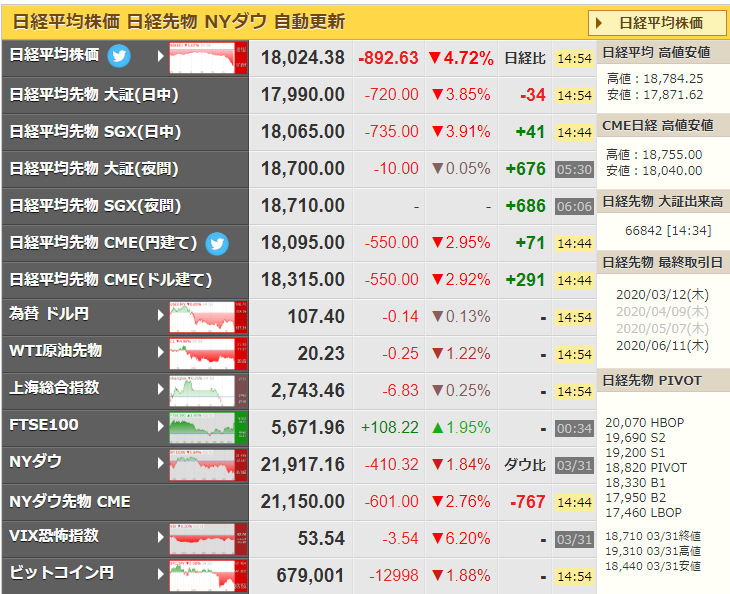 権利落ち日が終わって日経平均はガクっと落ちてきているお。