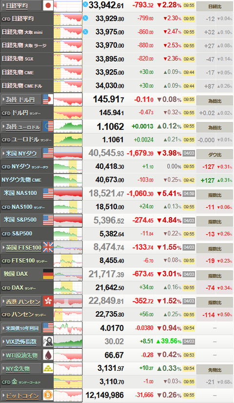 一瞬耐える動きは見せたものの、トランプ関税の影響はやはり大きく株価は今日も大きめの下落だお。