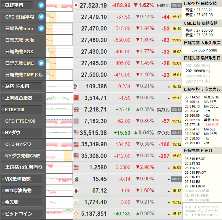 日経平均は後場に下げ幅を縮小して450円程安で引けだお。