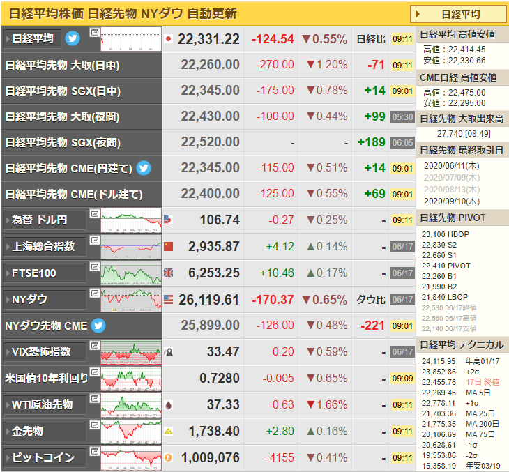 朝の相場記事に書いた内容で日経平均は下落してのスタート、ダウ先も下げ幅を拡大しているお。