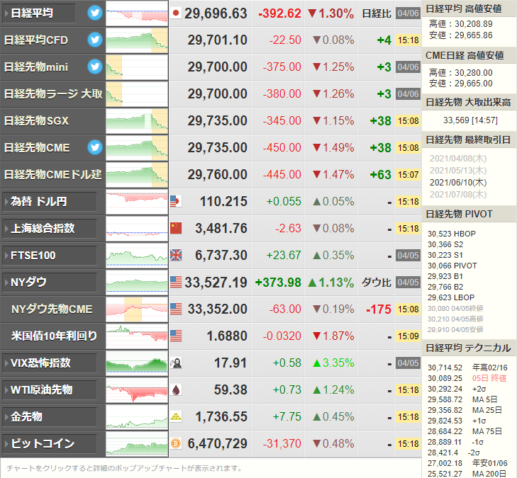 あとは日経平均が少し大きめに下落だお。