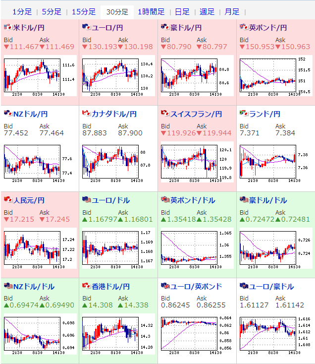 ドル円も朝の段階では111.7円に迫るも一旦押されてお昼ごろには111.35円付近。