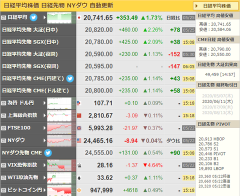 米中関係や香港問題で気になる点はあるけれど、今のところ株価は追加経済対策や経済再開期待でリスクオンに振れている様子だお。