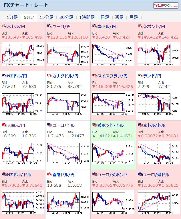 為替は割と安定した推移、ドル円、ユロ円、ポン円は円安気味、豪ドルが20pips程円高に落ちたお。