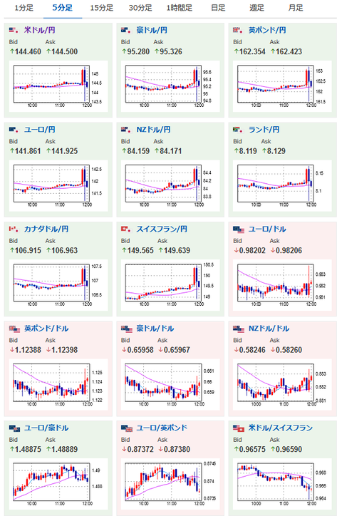 ただその直後松野官房長官の発言でレートチェック警戒、1ドル143.5円に押し戻される振動。