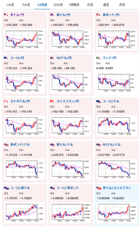 ドル円は154円台前半の推移に戻したお。