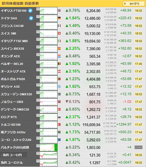 欧州はドイツの製薬会社のワクチン治験で良い結果が出た事を背景に上昇しているようだお。