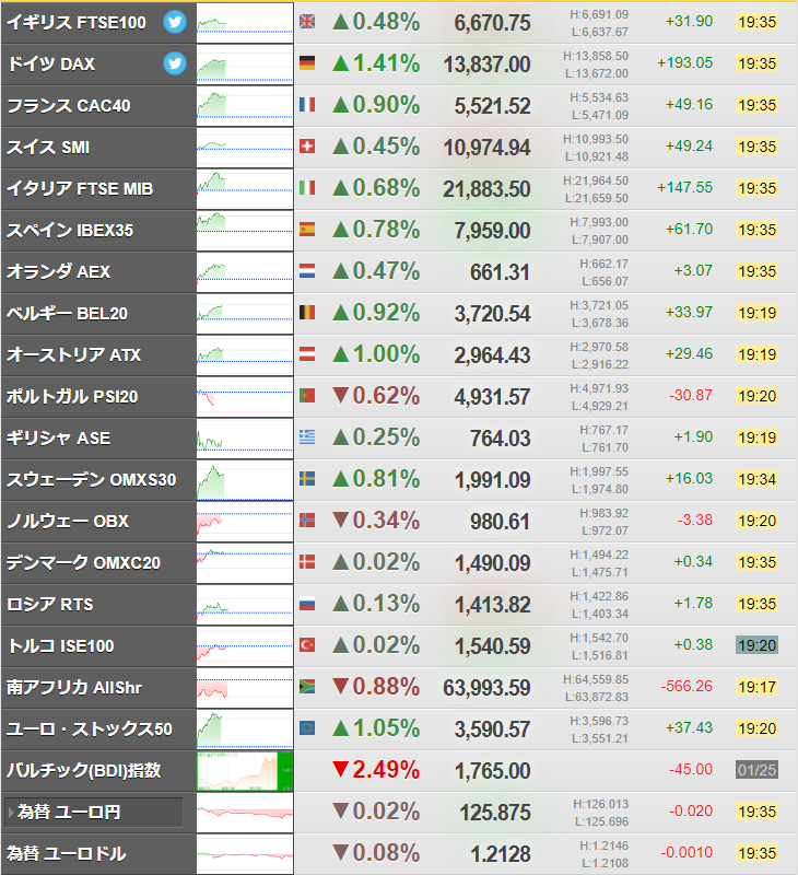 欧州時間に入ってから株価は堅調に推移し始めているお。
