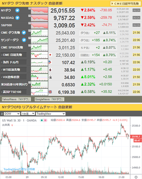 米国での問題は全く解決していないけれど、欧州株の上昇に合わせてダウ先は連れ高だお。