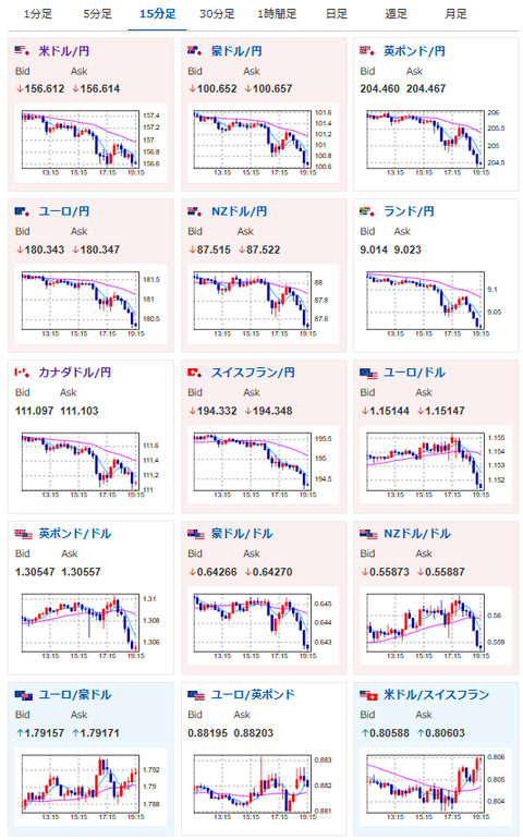 どこかで反転するかな?と思っていたけれど、本日は一方的に円買い相場だお。