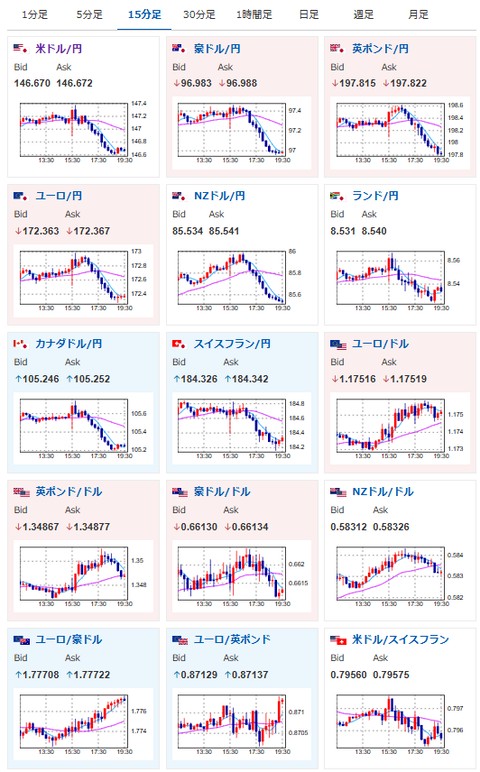 内田氏発言で伸びるかと思ったら、それ以上に米債利回り低下の影響が強くて円高寄り。
