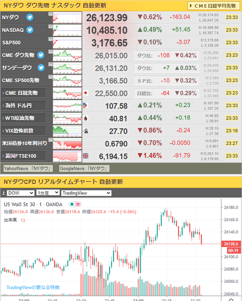 ダウも反落こそしているものの、まだ26,000ドル台はキープしているお。