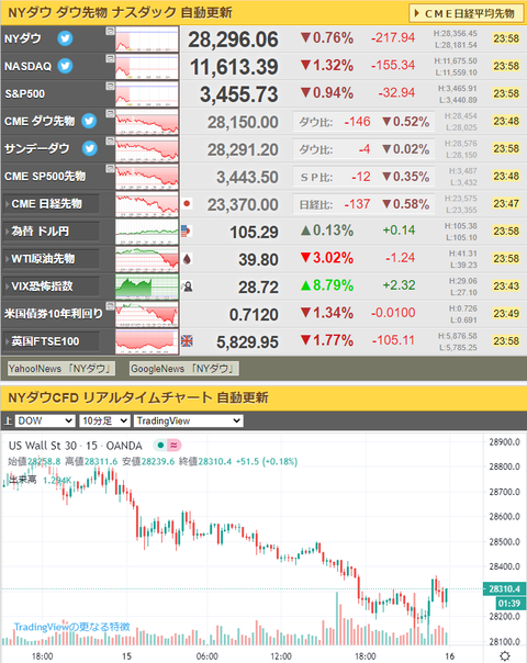 米株価指数は現物でも下落中だお。