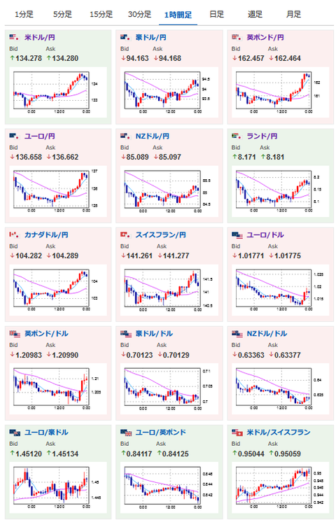 こちらから本来はユーロが下がりそうだけれど、円がそれ以上に弱くユーロ円も上昇しているお。