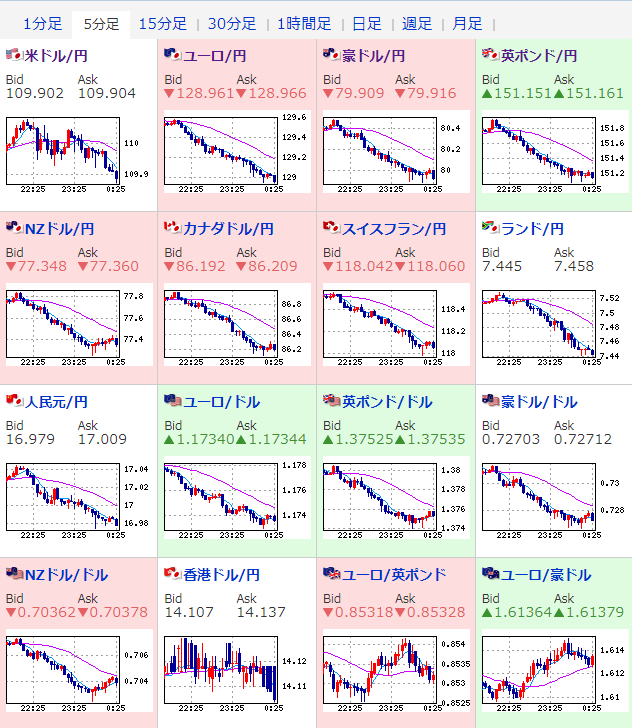 21時30分頃よりクロス円は全面的に円高だお。