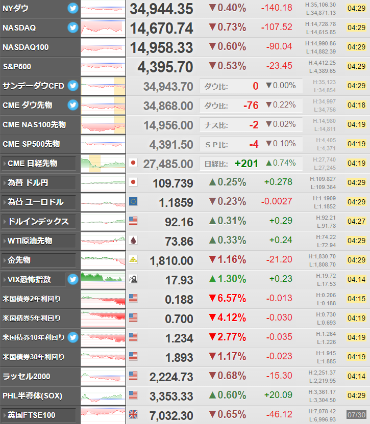 Amazon株は大きく下落(7%超)したものの米株価指数は引け間際で下げ幅を縮小。