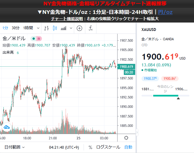 金価格は1900ドルを維持だけれど割れるかどうかというところ。