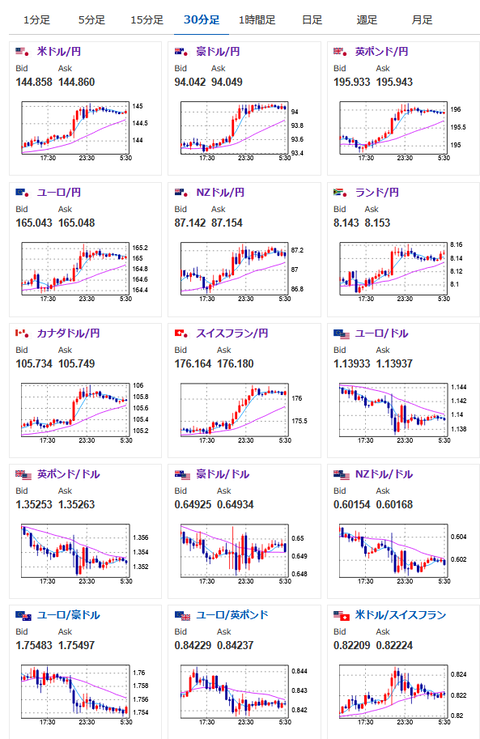 市場オープン時144.0円→クローズ時144.8円
