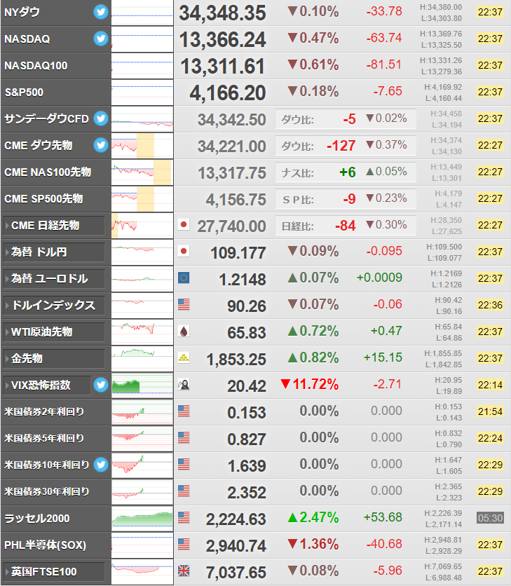 株価指数はやはりちょっと崩れ気味。