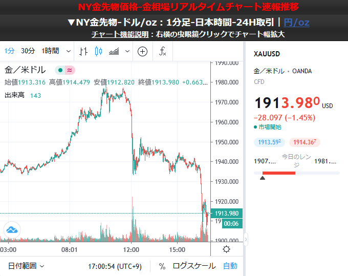 うーん、1940ドル台で一旦下げ止まったかに見えたけれど再度下げてきたお。