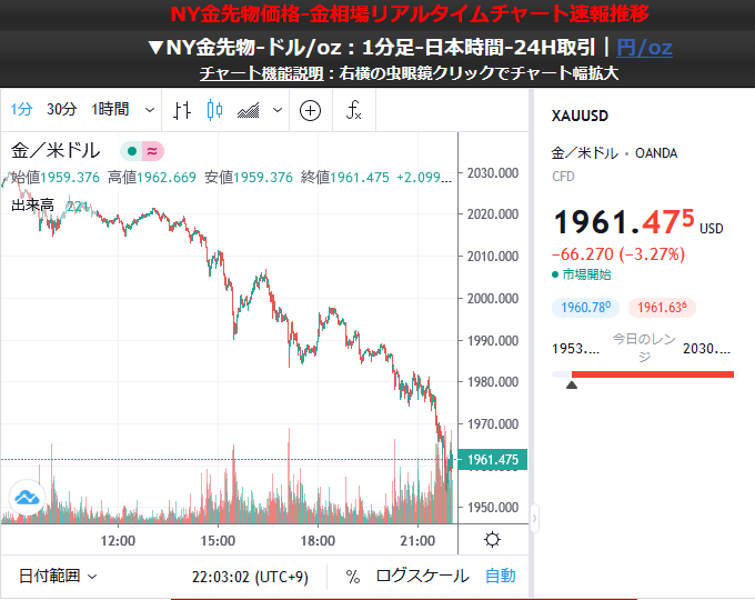 【相場】金相場、今回はなかなか下げ止まらず 1960ドル台まで下落