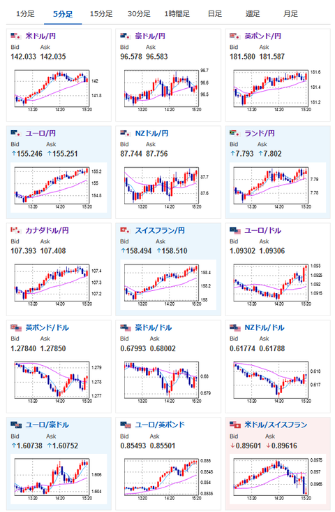 西村経産相が珍しく為替相場に関して言及し一時141円台半ばまで円高に落ちていたものの、後場では日経平均の上げに伴って142円台に復帰だお。