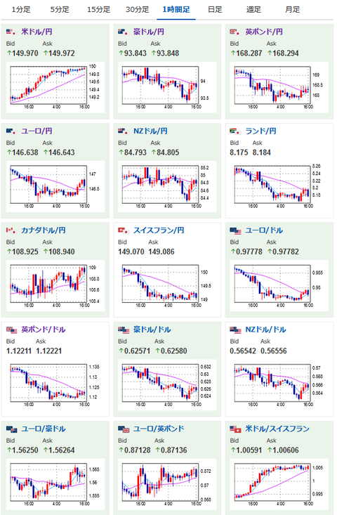 もう数pipsで150円に到達するところで踏みとどまり中。