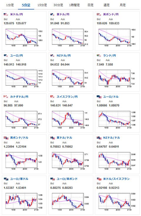 ダウ先や米債利回りの低下からドル円はじりじり円高になり一時129.6円台。