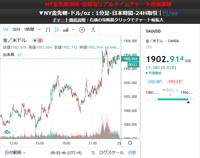 金価格の上昇、ドル円の下落、どちらも大きなトレンドが出来ていて非常に素直な相場になっているお。