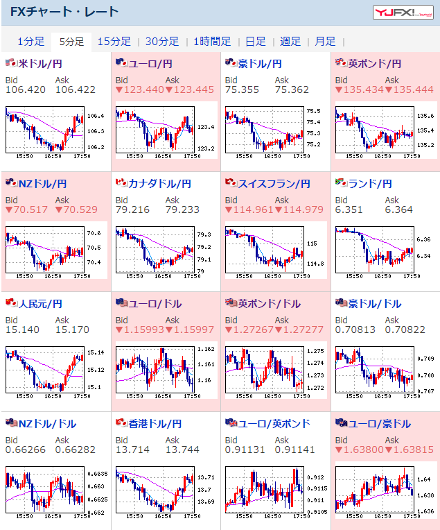 ドル円は一時106円台を割るかに思えたけれど、欧州の予想よりいい経済指標が発表されたあたりから跳ね返され現在は106.4円付近で推移中だお。