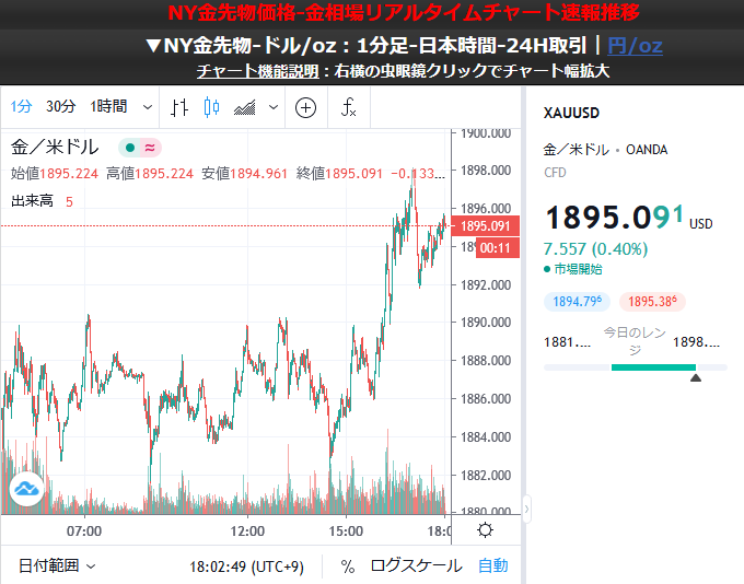 今回は1898ドルまで上昇、今度こそ1900ドル超え達成なるかお?