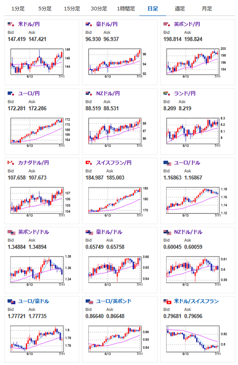 >クロス円のほうは先週に引き続き伸びてきているな。