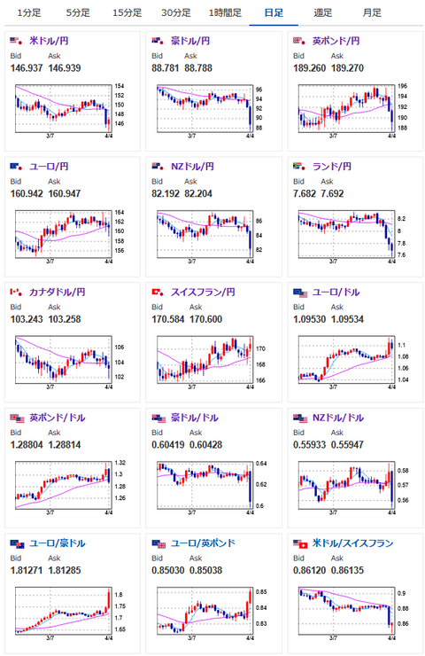 リスク回避で一気に円高に向かっていたところだったのだけれど、パウエルFRB議長のNY市場発言で、利下げはまだ様子見とのことで急ブレーキ、反転。
