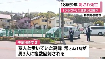 午前4時すぎ、鎌倉市笛田の路上で、友人と歩いていた高峰常さん(18)が、3人組の男らに背中付近を刃物のようなもので複数回刺され、心肺停止の状態で病院に搬送され、その後、死亡した。