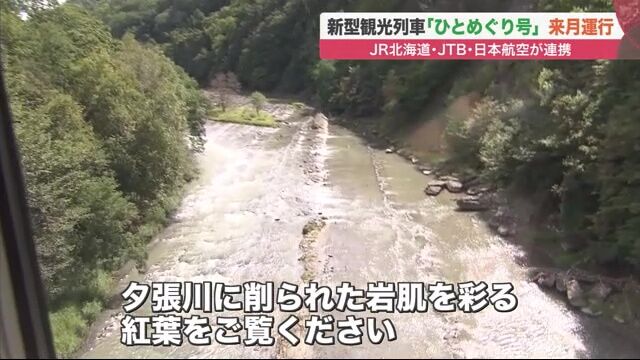 JR北海道が大手旅行会社などと提携した新型観光列車「ひとめぐり号」。車内で案内を務めるのは日本航空の客室乗務員です。