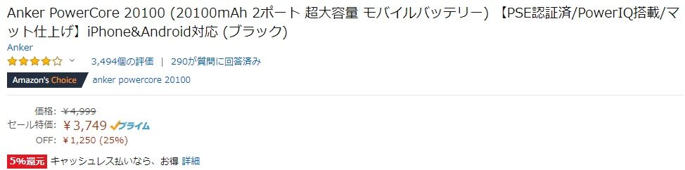 【結構安い】Anker PowerCore 20100がタイムセールで25%OFF!良質なバッテリーが欲しい方は是非!