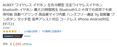 AmazonではすっかりおなじみになったAUKEYのワイヤレスイヤホン+マイク「AUKEY ワイヤレス イヤホン 左右分離型 完全ワイヤレスイヤホン bluetooth イヤホン 最大25時間再生 Bluetooth5.0 片耳でも両耳でも使用可能 自動ペアリング 高品質マイク内蔵 ハンズフリー通話 9g 超軽量 ワンボタン タッチ型 音声アシスト対応 コードレス iPhone Android対応 EP-T21」が結構安くなっています。クーポンコード「108AUKEY」を入力するとレジ画面にて25%程割引されます。商品ページはこちら:https://amzn.to/2SnHp3E(26日限定。適用されなくなったら終了です。値段には変動がある可能性がありますのでリンク先にてご確認お願い致します。)