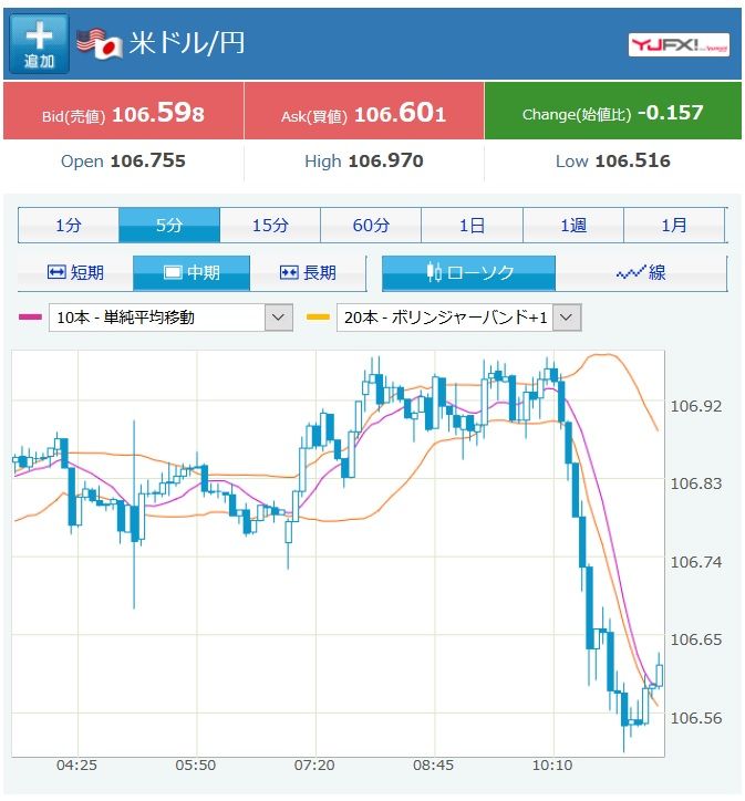 まだ株価は反応していないけれど、為替は反応しているな。一気に円高が進んでいる。