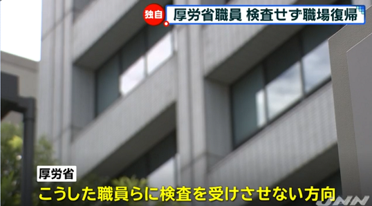 新型コロナウイルスの集団感染が起こっているクルーズ船で業務していた厚生労働省の職員の多くが、ウイルスの検査を受けずに職場に復帰していたことが分かりました。厚労省は今のところ、こうした職員らに検査を受けさせない方向です。