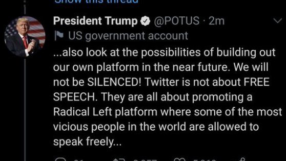 Trump tweets from POTUS: “Twitter is not about FREE SPEECH!”