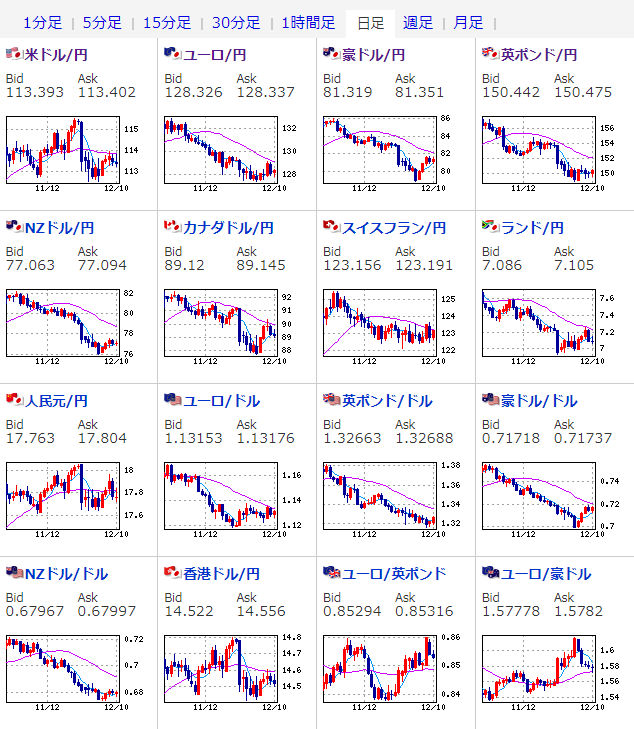 日足で見るとドル円は11月頭くらいのレート。